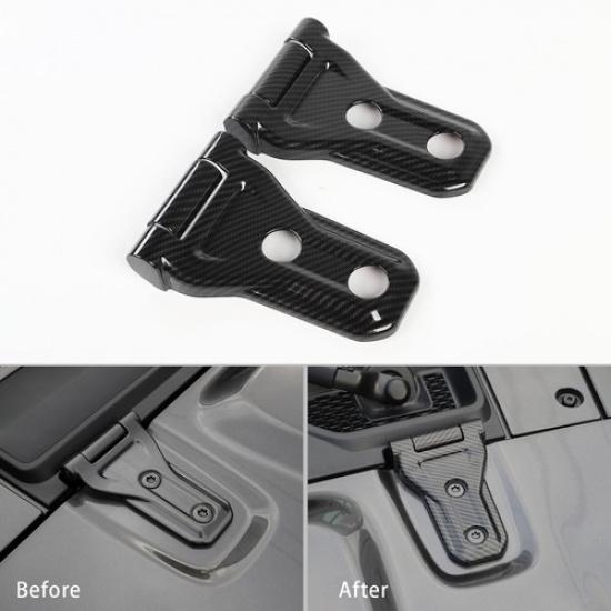 2X Carbon Fiber Engine Hood Hinge Decor Cover Trim For 2018+ Jeep Wrangler JL JT