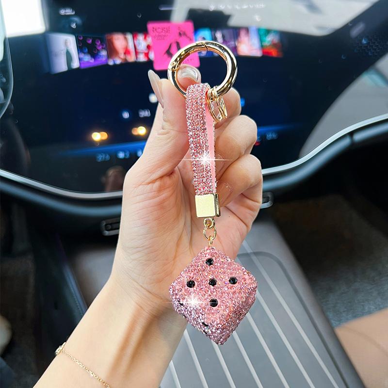 Creative Diamond Rope Dice Car Key Chain Pendant Personality Full Diamond Sieve Bag Accessories Fashion Backpack Gifts