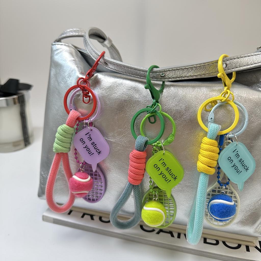 Printed Acrylic Hanger Mesh Rope Keychain Alloy Tennis Racket Tennis Bag Hanger Pendant For Mobile Phone Chain Decorative Gift