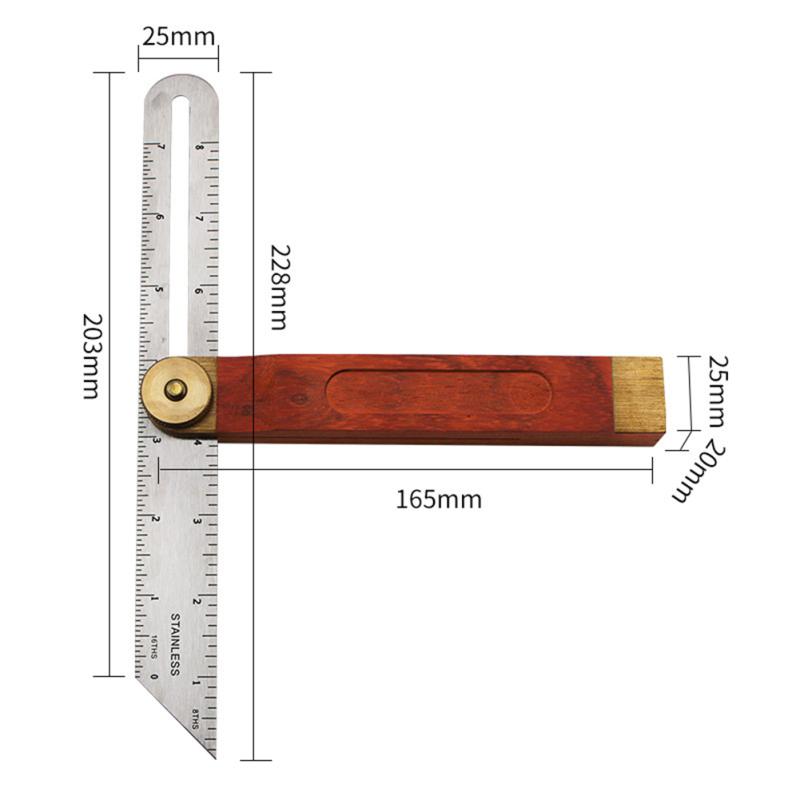 9inch Stainless Steel Sliding Angle Ruler With Wooden Handle Multi Angle Adjustable Measurement Tool