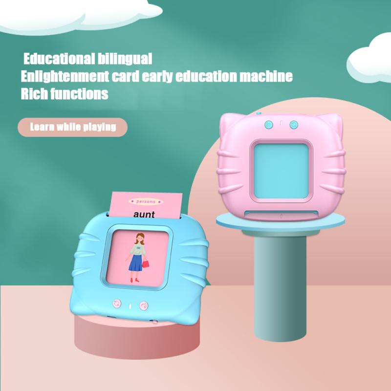 --English-Chinese Bilingual Toddler Learning Toys: 2-6 years old free-flying talking cards, including learning card machine and 112 double-sided cards with 224 sight words, covering 12 topics, including people x 8; colors x 9; shapes x 5; Animals x 56; Food x 21; Fruits x 18; Vegetables x 17; Daily Necessities x 31; Clothing x 16; Nature x 10; Jobs x 8; Vehicles x 25.