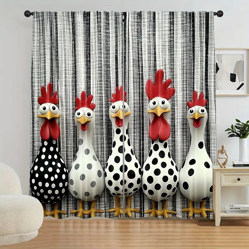 2pcs- Retro chicken pattern - Printed curtains, window decorations, home decorations, room decorations