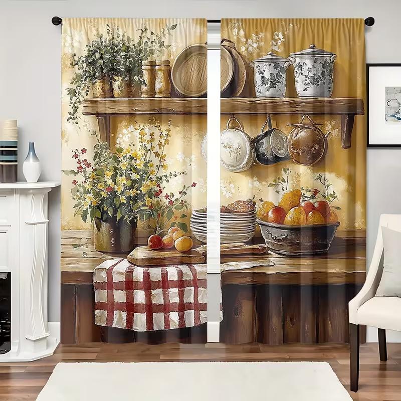 2 Pcs Retro kitchen print curtains,suitable for bedroom,living room kitchen decoration,home decoration,window decoration