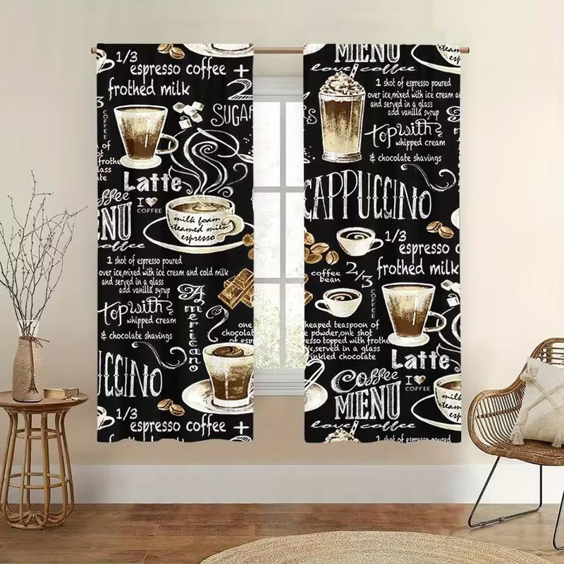 2 Bucăți Perdele cu imprimeu seria Cafea, potrivite pentru decorarea dormitorului, sufrageriei, bucătăriei, decorarea casei, decorarea ferestrelor