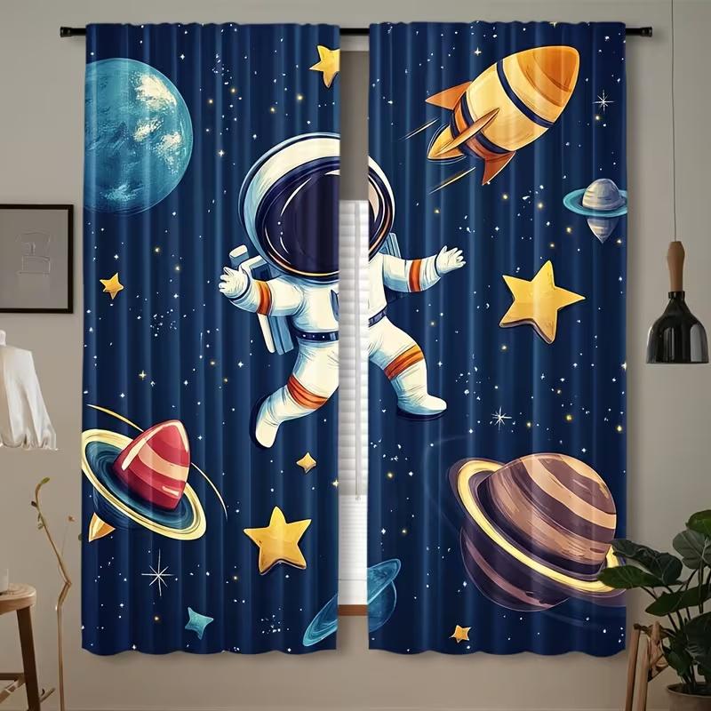 2Pcs Katon Astronaut Planet print curtains,suitable for bedroom,living room kitchen decoration,home decoration,window decoration