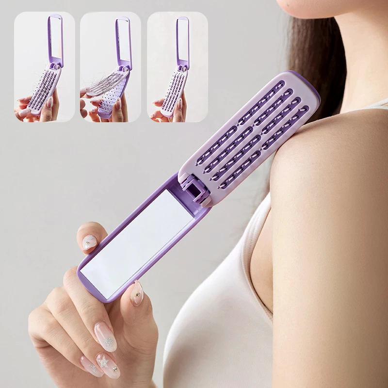 2 In 1 Foldable Comb With Mirror Hair Scalp Massage Comb Anti-Static Travel Air Cushion Styling Comb Suitable For All Hair Types