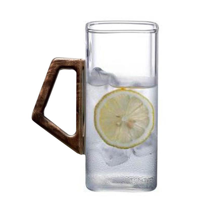 Thickened wood handle glass Household transparent square milk breakfast cup Printable copy High borosilicate glass