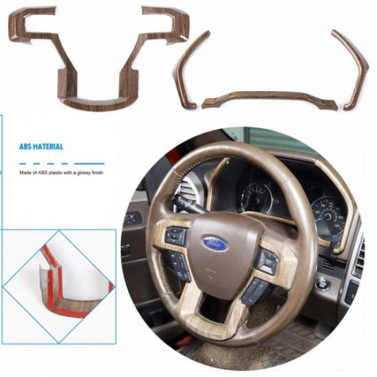 Wood Grain Dashboard Panel Steering Wheel Cover Trim Kit for Ford F150 2015-