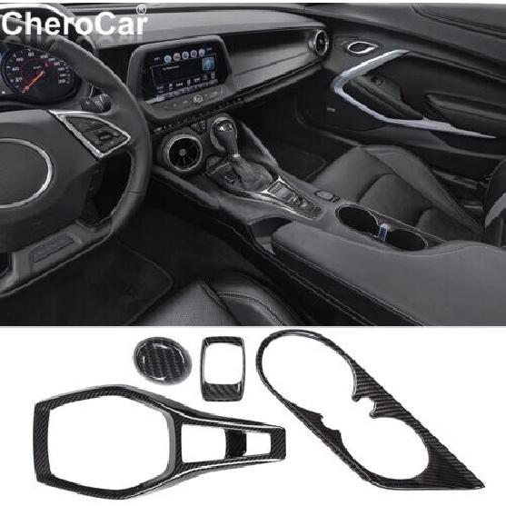 Console Gear Shift Panel Trim Cup Holder Cover for Chevy Camaro 17+ Carbon Fiber