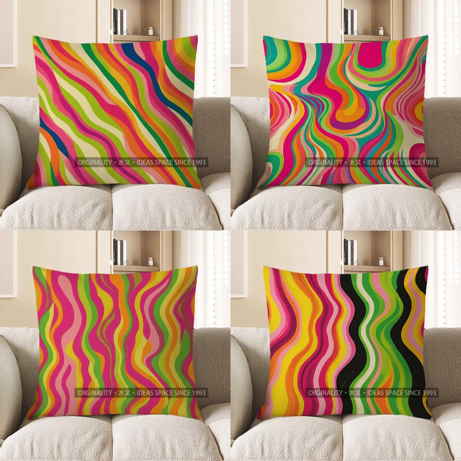 Home Decor Colorful Wavy Lines Pillow for Stylish Decor Pattern Cushion Cover Suitable for Sofa Bedroom Car Pillow Cover