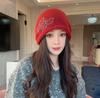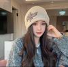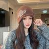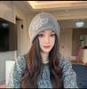 2025 new crimping drawstring stacking hat showing a small face knitted autumn and winter warm ear protection hat women's cold hat Baotou hat