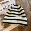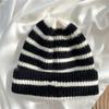 Hat women's season black and white striped versatile wool hat trendy warm knitted couple Korean version Japanese hat factory