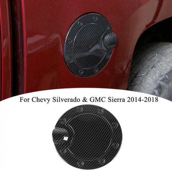 Carbon Fiber Door Fuel Filler Tank Gas Cap Cover Trim For Silverado Sierra 14-18