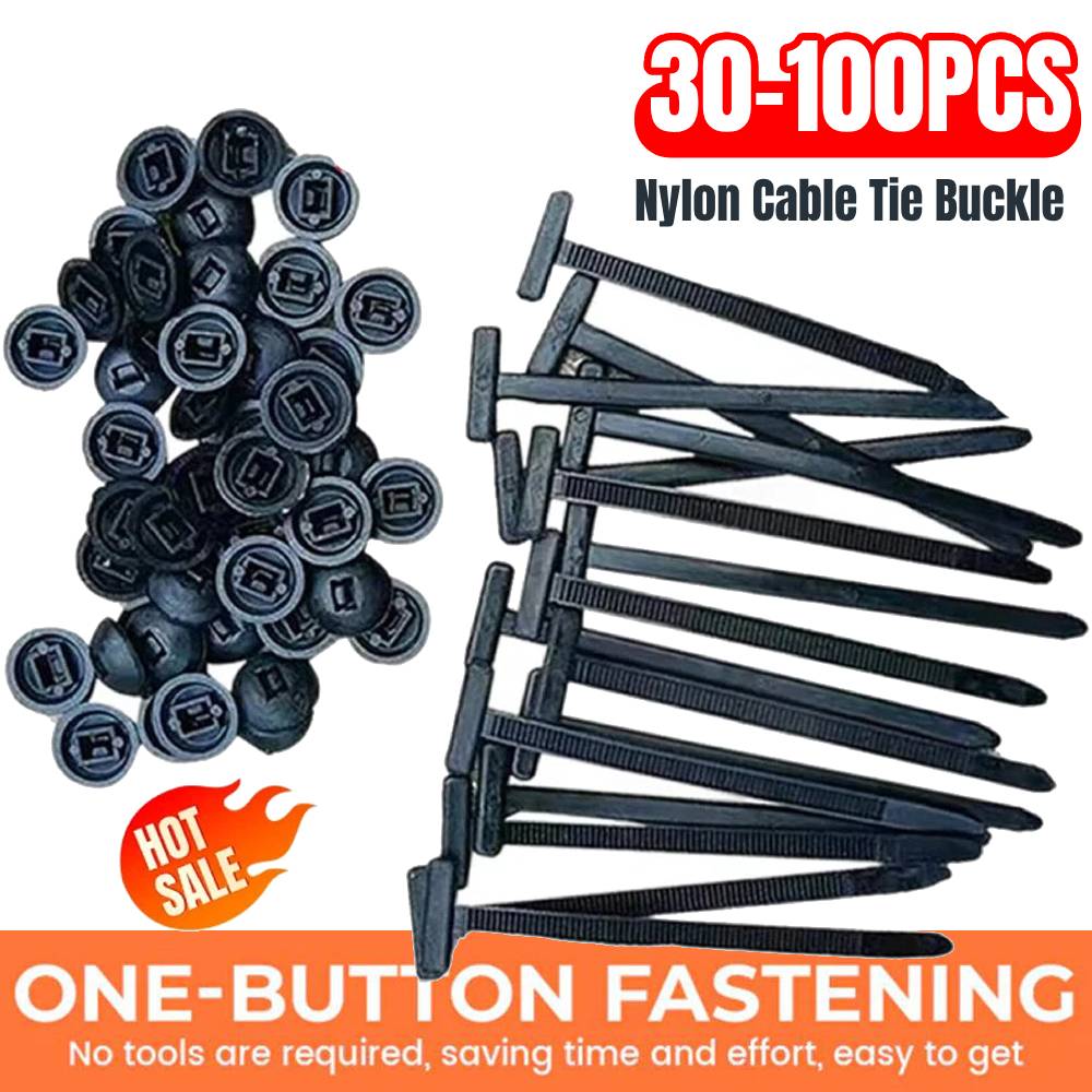 30-100PCS Nylon Cable Tie Buckle Self-Locking Zip Ties Holder with Pin And Button Multi-Purpose Cable Tie Tool for Car Repair
