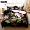 Pink Flower Queen Bedding Set Black Duvet Cover Set Bedding Digital Printing Bed Linen King Size Duvet Cover Set Bedding Set