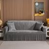 Elegant Stretchable Sofa Cover with Skirt for 1/2/3/4 Seater Soft Velvet Non-Slip Elastic Luxury Solid Color
