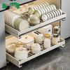 Punch-free Pull Out Dish Rack Built-In Drawer-type Plate Drain Rack Durable Dish Holder Pantry