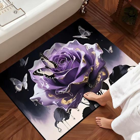 3D Rose Bathroom Rug Realistic Rose And Butterflies Floor Mat Absorbent Non-Slip Rug for Entrance Kitchen Bedroom Living Room