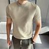 High Quality Solid Color Thick O-Neck Knitted T-Shirts Men Slim Fit Short Sleeve Knit Pullovers Korean Style Casual Tees Tops