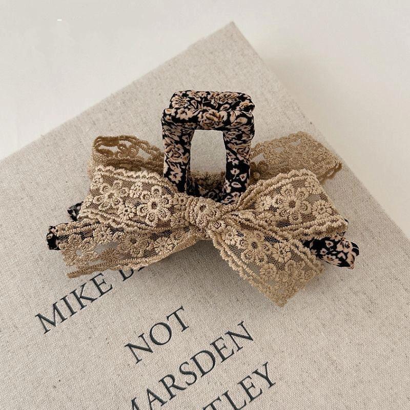French Vintage Floral Lace Butterfly Knot Hair Clip Large Shark Clamp Sweet Girl Gentle Style Hair Accessories Headwear
