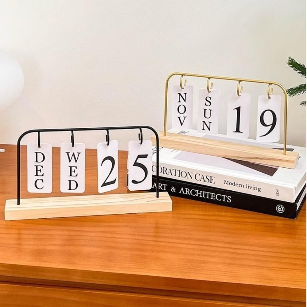 Wooden Desktop Flip Calendar Turn Page Design Vintage Standing Calendar Creative Series Date Display Wooden Calendar