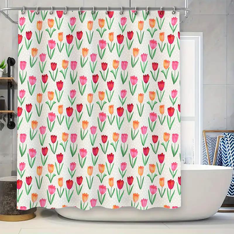 Floral Shower Curtain Botanical Tulip Flowers Pattern Waterproof Bathroom Decor Vintage Rustic Farmhouse Aesthetic Home Textile