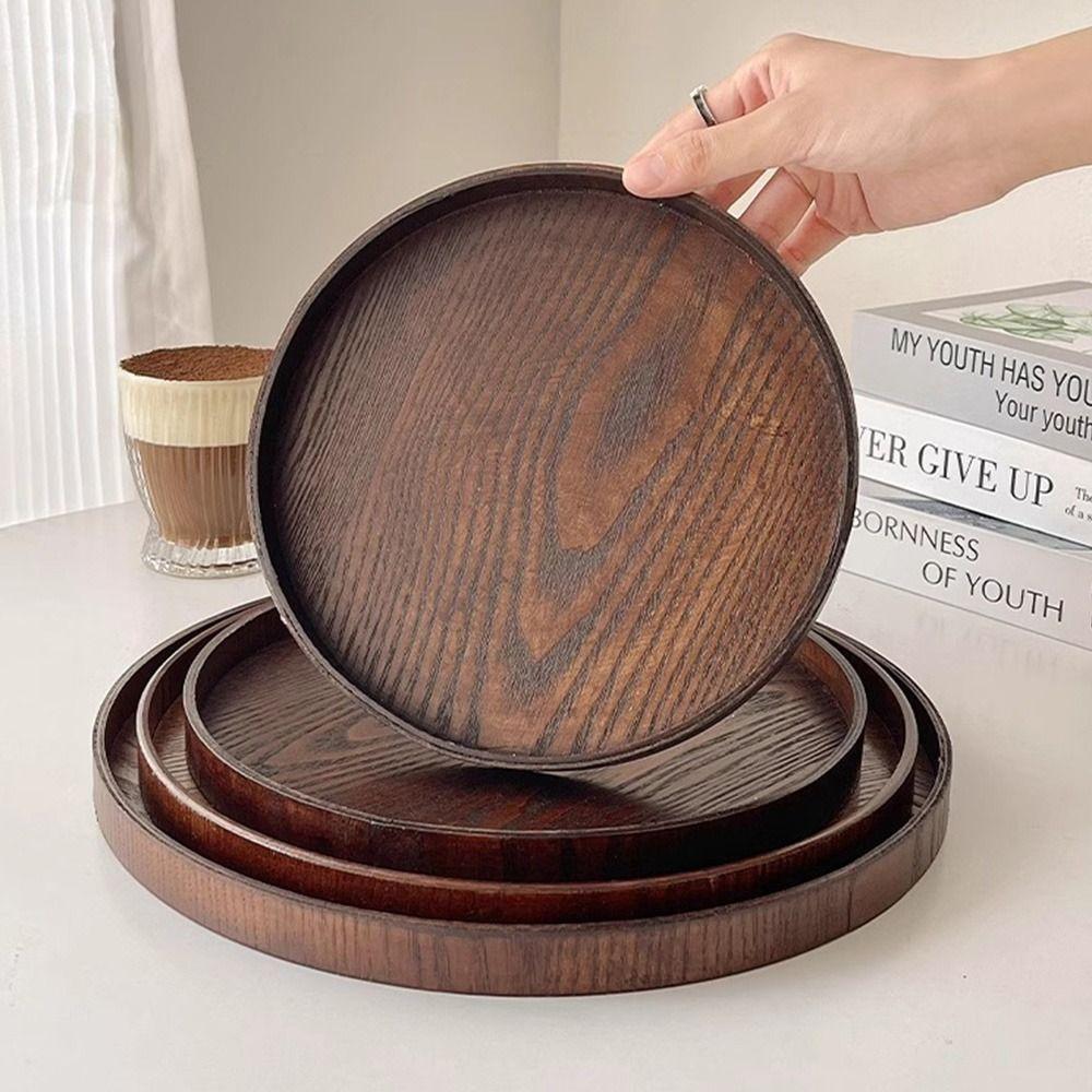 Vintage Round Serving Tray Wooden 21/24/27/30/33cm Decorative Tray Food Bread Pan Coffee Home Table