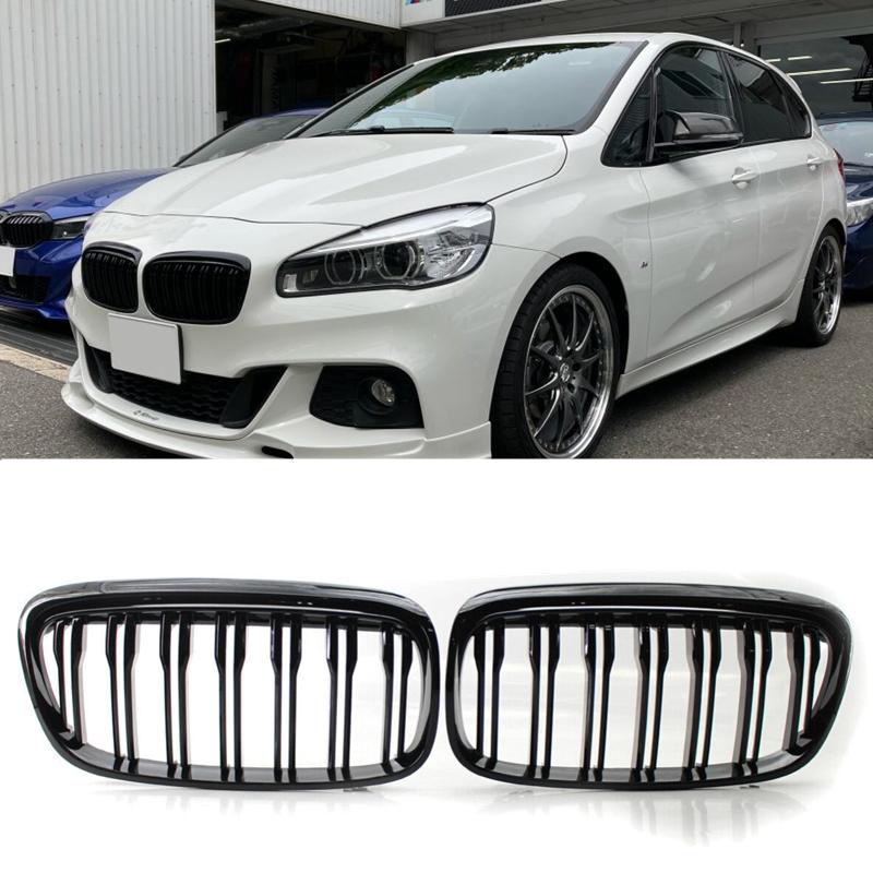 Pair Double Slat Kidney Grille Front Bumper Grill For BMW F45 F46 Tourer Pre-facelift 2014-2017 Gloss Black Car Accessories