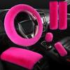 Plush Car Steering Wheel Cover 6piece Set Winter Warmth And Elastic Non Slip Handle Cover Women's Car Interior Accessories