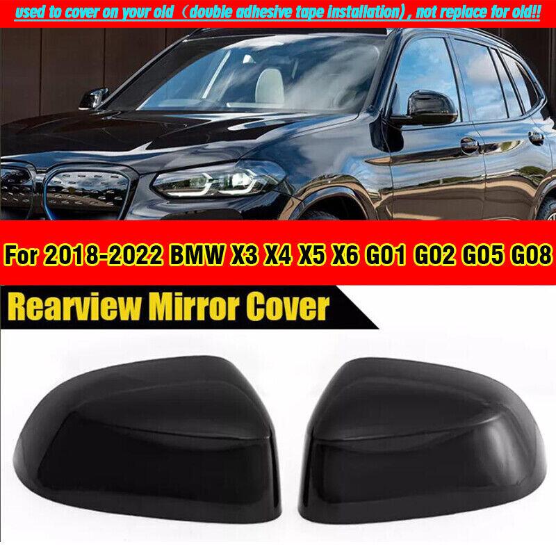 2X Gloss Black Mirror Cover Cap For BMW X3 X4 X5 X6 G01 G02 G05 G08 2018-