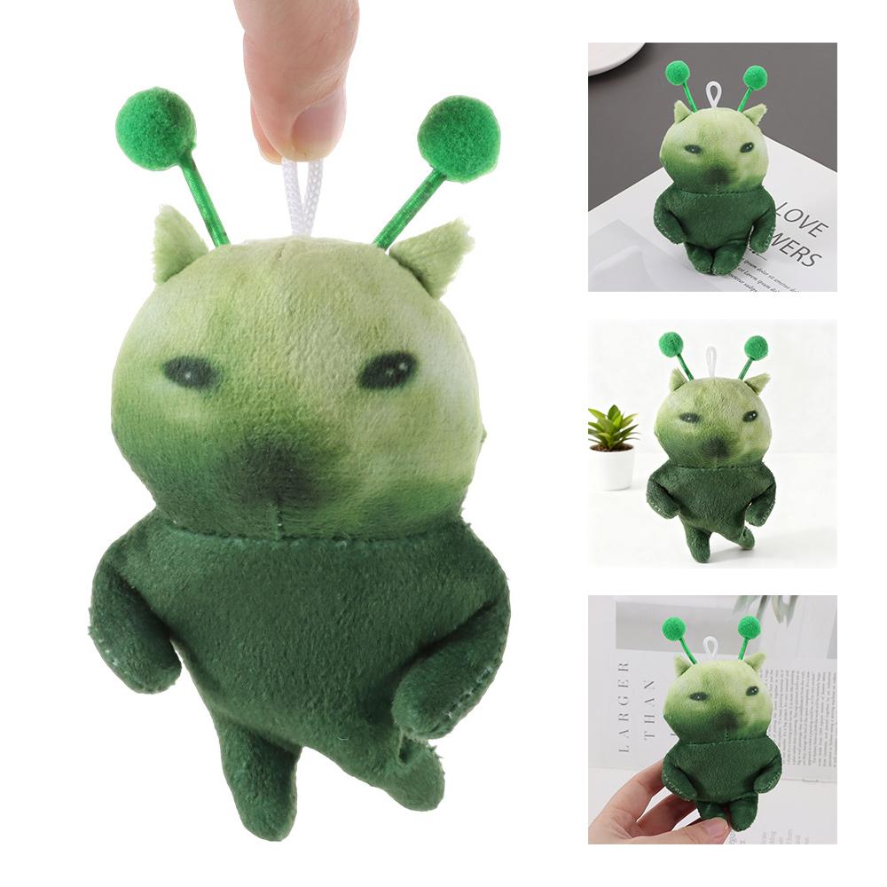 10cm Green Alien Cat Plush Toy Poseable Red Scarf Alien Kitten Toy Bag Charm Anime Fans Gifts