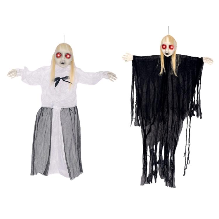 Crafted from pp with cloth, easy to assemble, this voice activated skeleton realistic skeleton hanging ornament, which effortlessly display on ceiling, door, wall, window, or in porch, lawn, yard, garden, patios, outdoor or indoor space.
