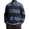 Men's Casual Fashionable Loose And Comfortable Striped Printed T-shirt With Lapel And Long Sleeved Top
