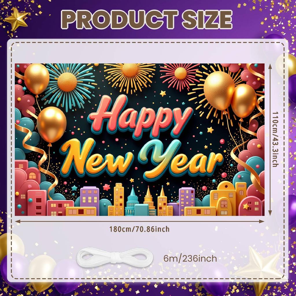 New Year Backdrop Party Backdrop Happy New Year Banner Golden Balloons Celebration Display For New Year Party Home