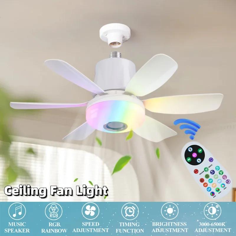 Socket Fan Light Smart Remote Control Dimmable Timing Ceiling Fan Lamp Wind Speed Adjustable Bedroom Living Room RGB Light Fan