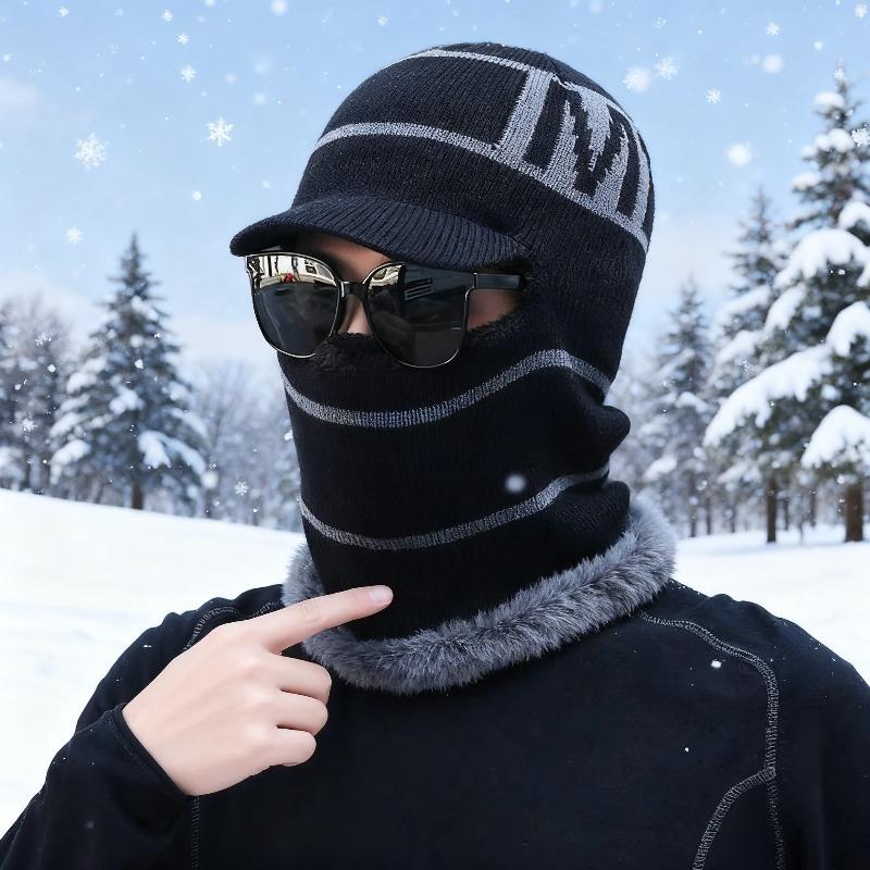 Winter Warm Knitted Hat Balaclava Pullover Hat and Scarf Set Windproof Ear Protection Hats Women Fashion Beanies