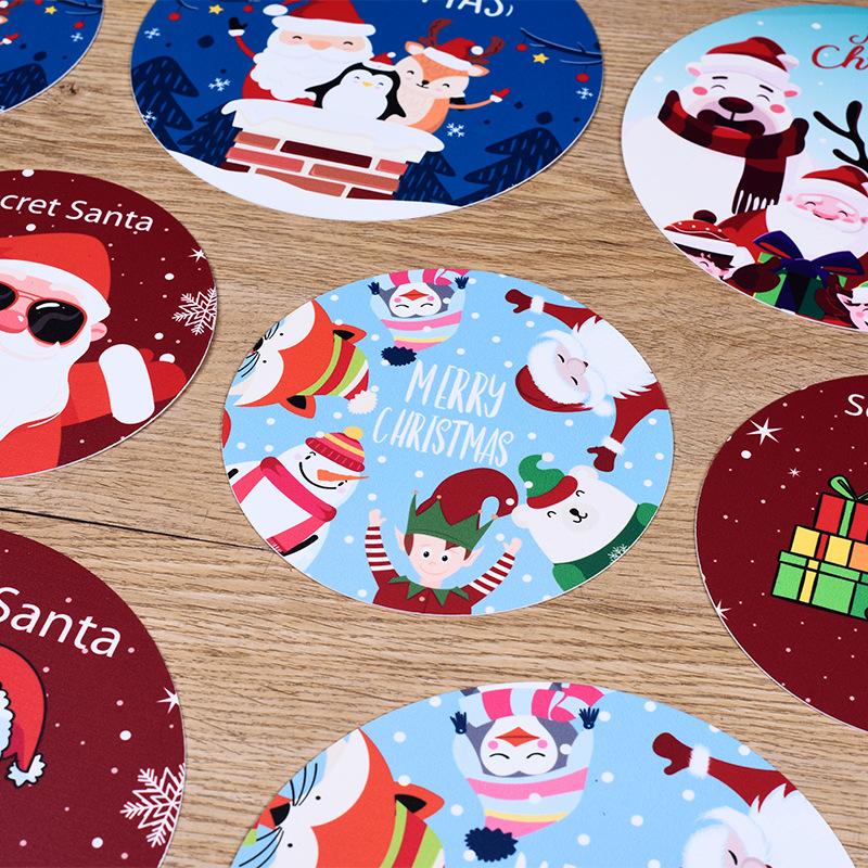 5Pcs/set Merry Christmas Round Cup Mat Table Placemats Coaster Anti-slip Kitchen Cushion Romantic Wedding New Year Party Pad
