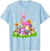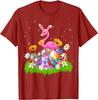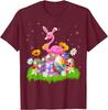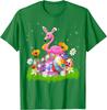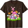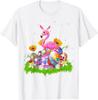 Flamingo Easter Bunny Ears Eggs Graphic Tee Cotton Casual Short Sleeve T-Shirt