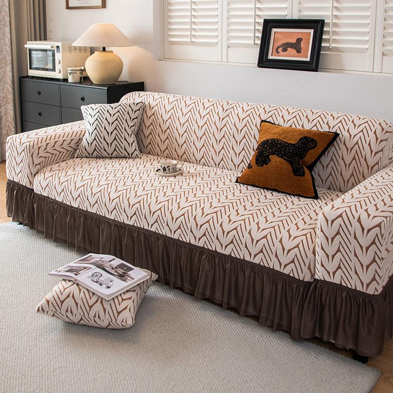 The New Skirted Jacquard Velvet Sofa Cover Exudes A High End Feel and Is Suitable for All Four Seasons. It Is An All in One Anti Cat Scratch Package