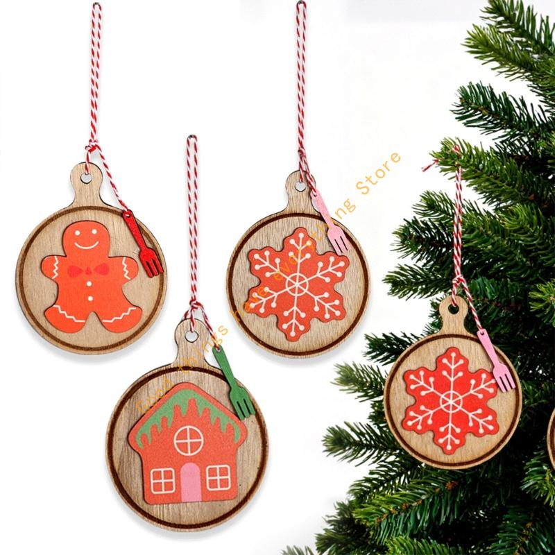 Festival Wooden Cookie Ornament Multiple Designs Hanging Ready For Christmas Tree Wall Decoration 55KF