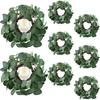 8 Pcs Candle Rings Artificial Eucalyptus Leaves Wreaths Candle Rings Wreaths Greenery Wreath Candle Rings for Pillars Boho Wreath Pillar