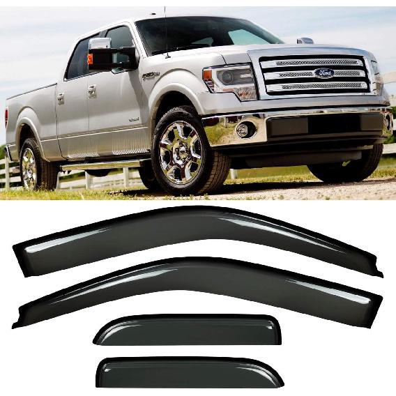 4pcs Window Visors Sun Rain Guard Out-Channel Style for Ford F150 04-14 Extended Cab Smoke Side Wind Deflectors Visor