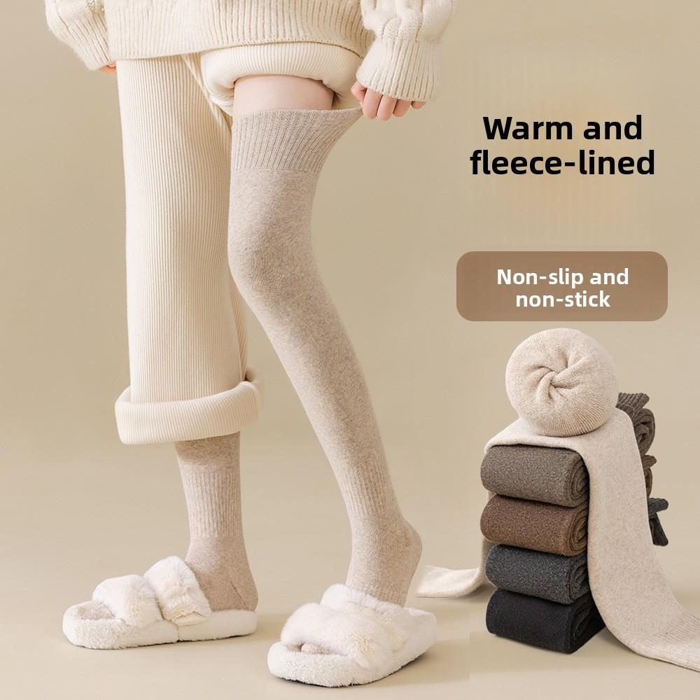 Autumn and Winter, Women's Knee-length Fleece Socks with Thick Loops for Warmth, Pure Cotton for Ladies
