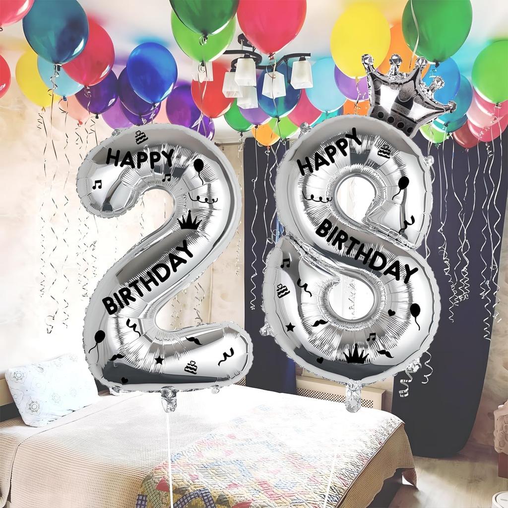 40 Inch Silver Foil Balloon Number 28,Crown 28th Birthday Party Decorative Balloons,Number Large Numbers Balloon 28,Girls Boys 28th Birthday