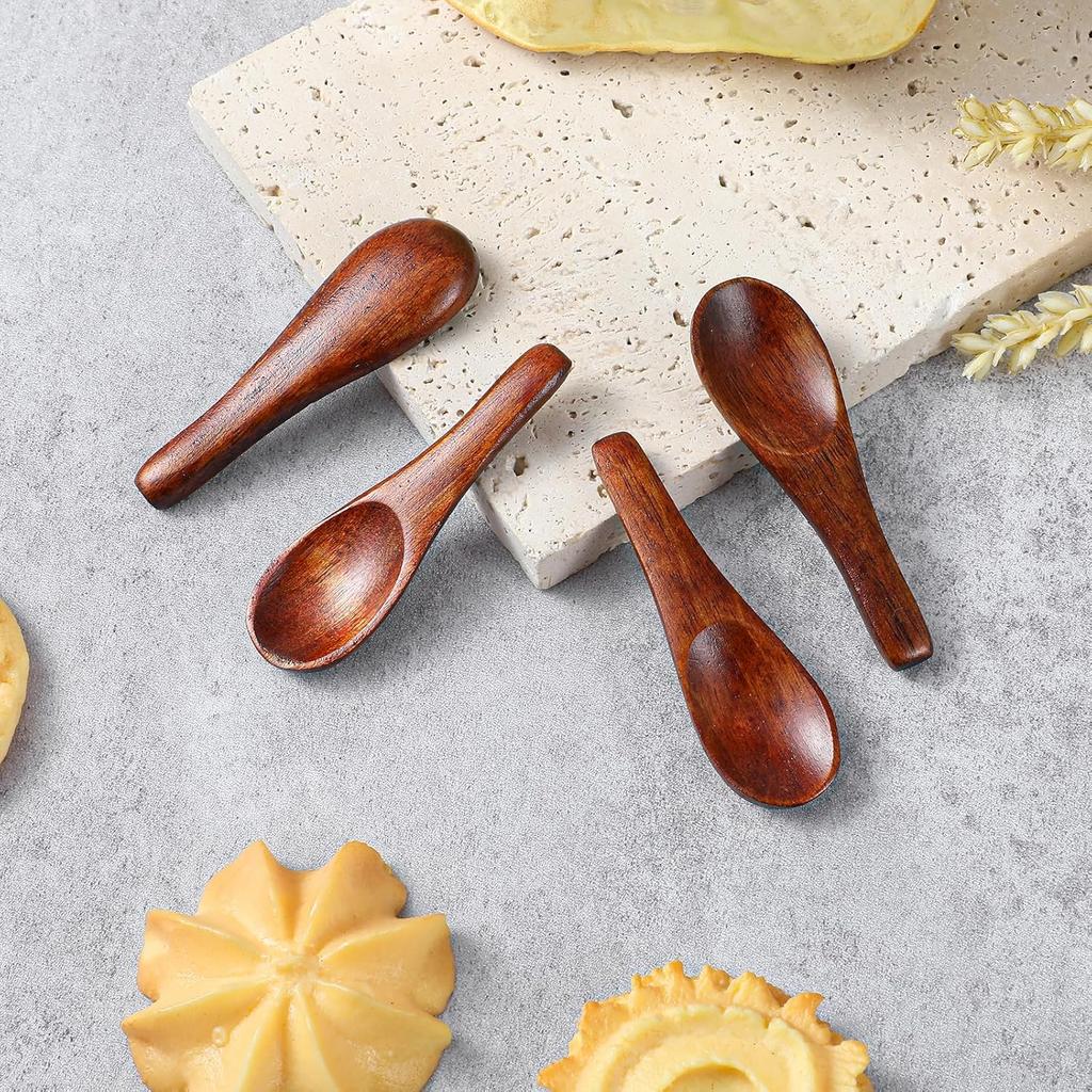 4 Pcs Handmade Tiny Wooden Spoons, 2.4in Tiny Spoons for Spices, Mini Wooden Spoons for Sauces Sugar Salt Dips Spices Honey Mustard Cooking (4)