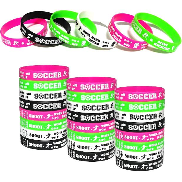 24 PCS Soccer Motivational Silicone Wristbands Bulk for Events/Carnival/Birthday Party Favors Supplies Decorations Goodie Bag Favor Stuffers