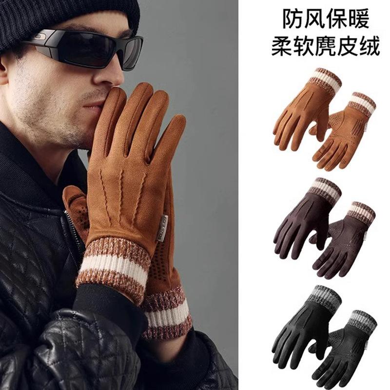 Gloves Men's Day Warm Windproof Dew Fingers Suede Battery Car Electric Vehicle Gloves New