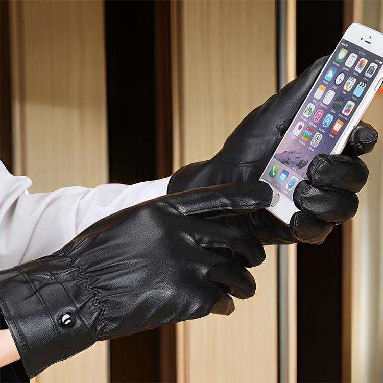 New warm and cold leather gloves men's waterproof Korean version trendy cool velvet thickened gloves women's cold protection