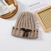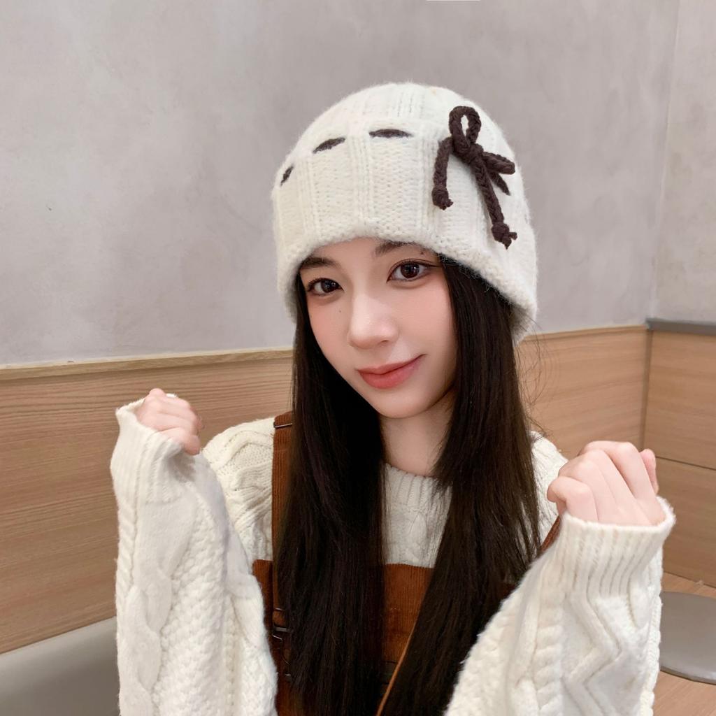 Winter 2025 Bow White Knitted Wool Cap Women's Plush Warm Big Head Circumference Baotou Hat Ear Protector Hat