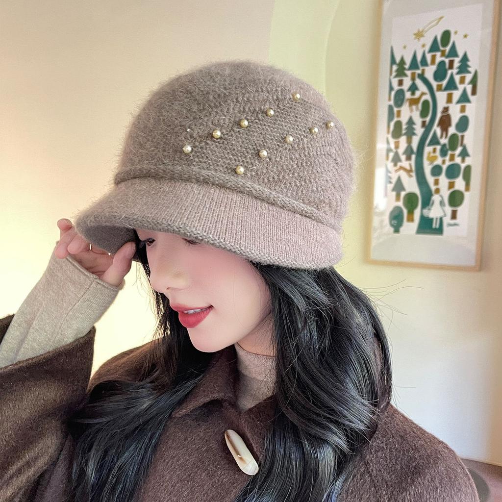 Elegant Winter Knitted Bucket Hat for Middle-aged Women Thickened Warm Beanie Mother's Gift Basin Cap